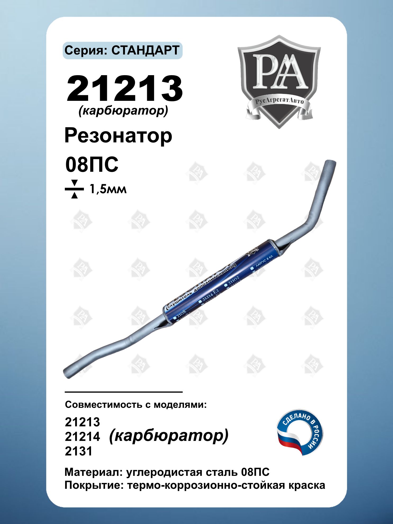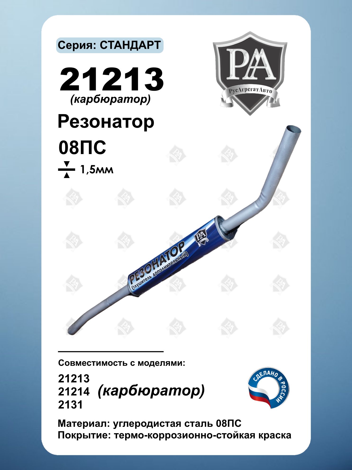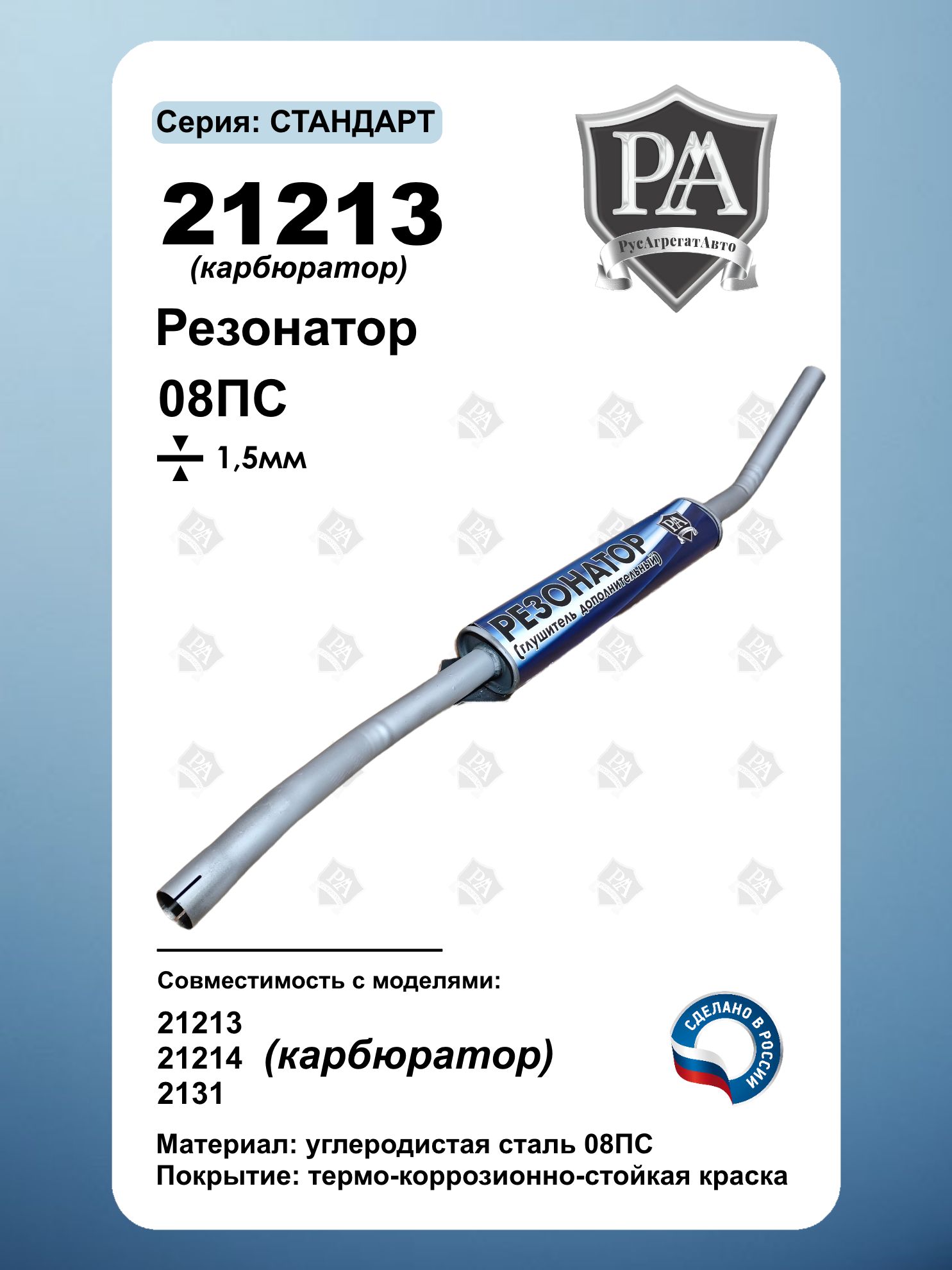 Резонатор РусАгрегатАвто серия СТАНДАРТ (дополнительный глушитель) для 21213 Специальная конструкция обеспечивает эффективное снижение шума и вибраций, улучшая комфорт при езде по бездорожью. Ключевые преимущества: Оптимизирован для внедорожников – устойчив к механическим повреждениям Эффективное шумопоглощение – снижение гула и вибраций Усиленная конструкция – сталь 1.5 мм Изготовлен из углеродистой стали 08ПС Точная заводская геометрия – установка без доработок, Совместим с ВАЗ 21213 НИВА, Нива Легенд Сделано в России